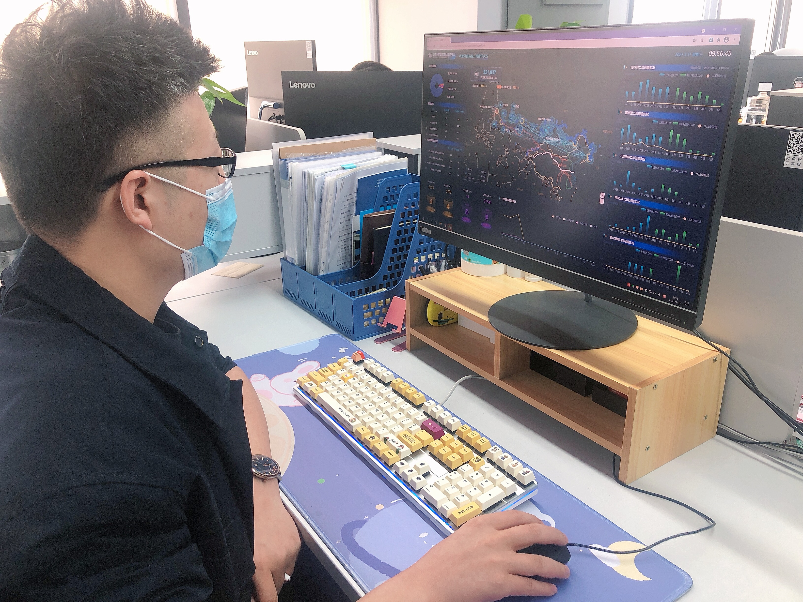 俄運(yùn)通大數(shù)據(jù)事業(yè)部工作人員線(xiàn)上實(shí)時(shí)監(jiān)控貨物位置和軌跡信息