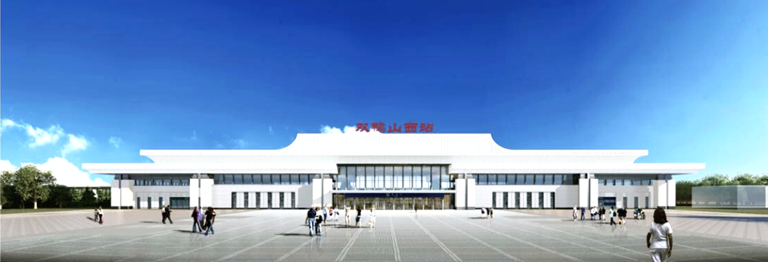 雙鴨山西站建筑面積9997.9平方米,設2條正線,3條到發(fā)線。以“農林盛地,昂揚煤城,融匯文脈,合于自然”為設計理念。建筑形體通過極強的橫向層次,呈現(xiàn)向中心聚集的趨勢,中心高兩側低類似于山脈的建筑天際線與橫向線條結合給人以綿延不絕的感覺,寓意城市文化及歷史如山如水般源遠流長。建筑整體造型著重體現(xiàn)雙鴨山市的煤城特色和豐富的農林資源,其煤炭相關產業(yè)一直作為城市建設發(fā)展的重要支柱,建筑主立面采用四根厚重有力的支撐柱,以表現(xiàn)這一理念,同時深入挖掘并體現(xiàn)雙鴨山市特有的文脈及自然特色。