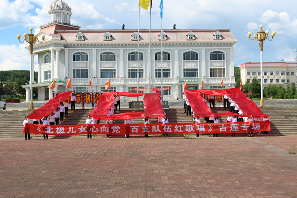 開展“高歌頌黨恩 永遠跟黨走”唱紅歌活動。在生產(chǎn)一線、機關(guān)科室的400多名黨員干部、職工群眾用百米長幅歌頌黨、感謝黨,齊聲高唱《沒有共產(chǎn)黨就沒有新中國》《歌唱祖國》,激情嘹亮的歌聲唱出了對中國共產(chǎn)黨的熱愛和禮贊。全體隊員還用黨旗和紅綢擺出了100的造型,以特殊的方式向建黨100周年獻禮,充分展現(xiàn)了新時代林區(qū)礦山人愛黨愛國的精神風貌。