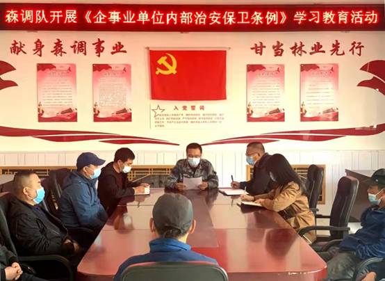 活動(dòng)中,森林調(diào)查設(shè)計(jì)大隊(duì)首先成立了安全檢查工作組,明確檢查范圍和內(nèi)容,并由主管安全保衛(wèi)負(fù)責(zé)人領(lǐng)學(xué)了《企事業(yè)單位內(nèi)部治安保衛(wèi)條例》,要求全隊(duì)干部職工進(jìn)一步提高政治站位,高度重視安全工作,嚴(yán)格落實(shí)安全責(zé)任制,認(rèn)真執(zhí)行值班值守制度,及時(shí)做好安全信息登記和對(duì)上報(bào)告工作,繼續(xù)加強(qiáng)對(duì)進(jìn)出單位人員的疫情監(jiān)控,著力保障企業(yè)內(nèi)部穩(wěn)定。
