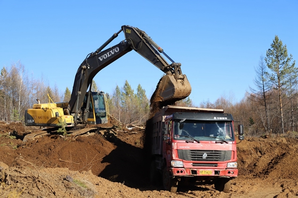 圖為阿木爾林業(yè)局多種經(jīng)營公司在取料場(chǎng)裝載砂石料,養(yǎng)護(hù)1—4線