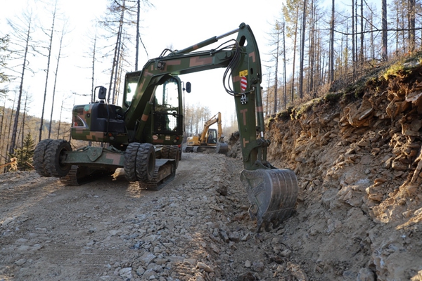 圖為阿木爾林業(yè)局多種經(jīng)營公司干部職工利用鉤機機械設備開挖2—1線新開通線路邊溝(王力/攝)