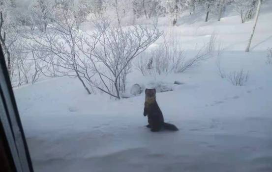 “冰雪畫廊”工作人員介紹,“紫貂只在天氣暖和或者雪不是很大時(shí)才會(huì)出現(xiàn),這幾天天氣回暖,紫貂出現(xiàn)的相對(duì)頻繁一些。雖然投喂了火腿腸,但是它們很警覺(jué),要等人離開(kāi)很久,才會(huì)靠近食物?!?/span>