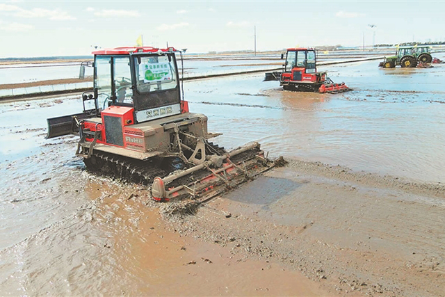 無(wú)人農(nóng)機(jī)在水田整地作業(yè)。 馬文竹 王帥攝