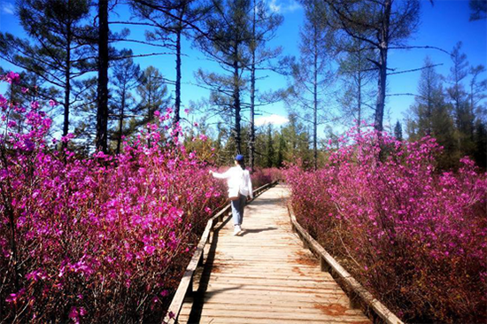 據(jù)了解,每年四月末、五月初杜鵑花都會如期綻放,因為今年氣溫較低興安杜鵑盛開的周期較往年延后,5月中旬達到盛花期,花期可持續(xù)一周左右。