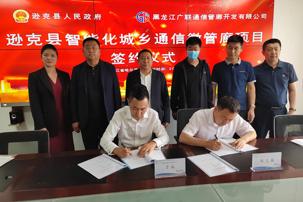 黑龍江經(jīng)濟(jì)網(wǎng)訊(黑龍江日?qǐng)?bào)全媒體見習(xí)記者商祺)6月12日,黑龍江廣聯(lián)通信管廊開發(fā)有限公司與遜克縣人民政府在哈爾濱市常青大廈舉行遜克縣智能化城鄉(xiāng)通信微管廊項(xiàng)目簽約儀式。
