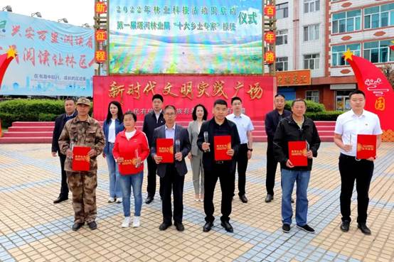 出席活動的林業(yè)局領(lǐng)導(dǎo)為塔河林業(yè)局“十大鄉(xiāng)土專家”頒發(fā)了授任證書和獎杯。