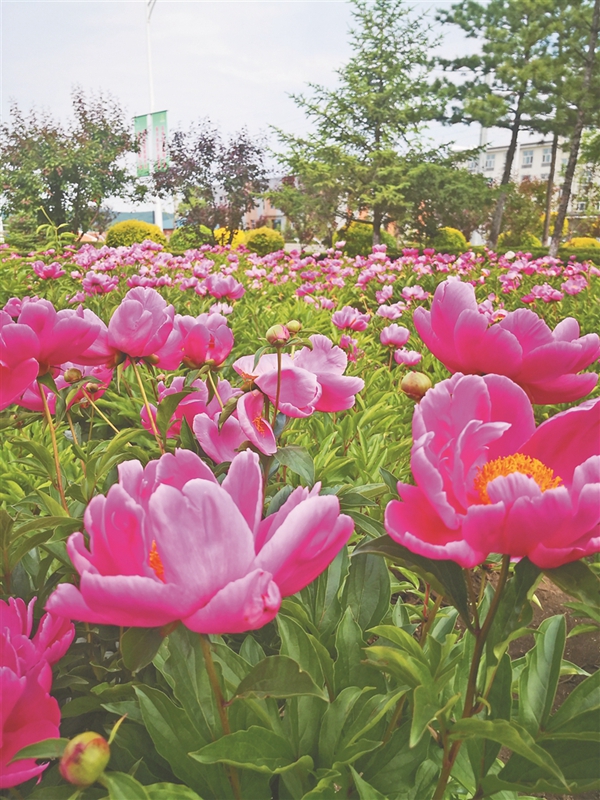 沿著公路,中藥材種植基地呈現(xiàn)一片花海:大片芍藥已經(jīng)開花,白的粉的隨風(fēng)飄搖;千畝黃芩都已經(jīng)3歲,仿佛綠蘿緞一直蔓延到遠(yuǎn)方的山坡;萬(wàn)畝沙棘谷,更像一幅水墨畫,剛露頭的沙棘果盡顯萌態(tài);樹下間作的蒲公英盛開著黃色的小花;紫的泛黑的藍(lán)靛果吸引一群群鳥兒不停來(lái)啄食……