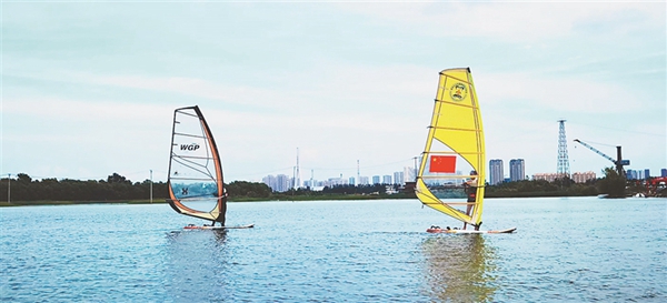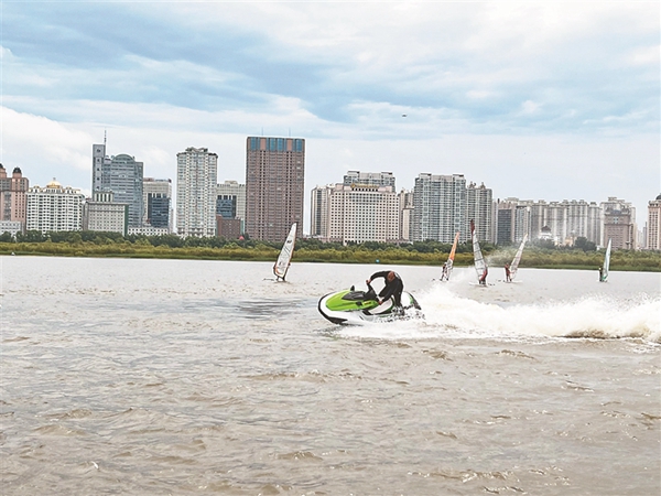 活動現(xiàn)場,摩托艇、水上飛行器、滑水板、帆板、帆船以及快艇觀光等多個水上運動項目輪番亮相。乘著江風,摩托艇以最大馬力在江中飛馳,水上飛行器在空中進行翻轉和沖浪……一場“速度與激情”的表演,引得觀眾連連拍手叫絕。