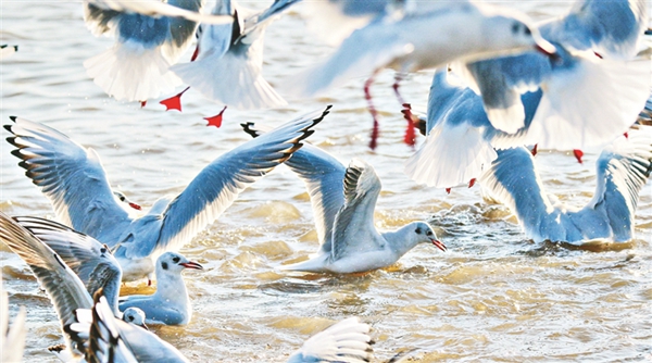近年來,隨著環(huán)境保護(hù)力度的加大,松花江生態(tài)持續(xù)向好,水豐魚多,給紅嘴鷗等候鳥提供了豐富的食物。每年,都有超過萬只的紅嘴鷗春秋兩季在松花江這處“驛站”歇腳。 黑龍江日?qǐng)?bào)記者 張澍攝