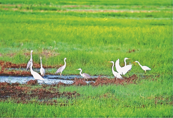 近日,寶清縣七星河國(guó)家級(jí)自然保護(hù)區(qū)濕地內(nèi)迎來大批游客,一望無際的濕地和葦塘讓游客心曠神怡。游客登上觀鳥臺(tái),俯瞰濕地,夕陽下大批的水鳥在七星河內(nèi)覓食嬉戲,“葦蕩連天碧,水鳥漫云空”,一幅人與自然和諧共生的真實(shí)寫照。