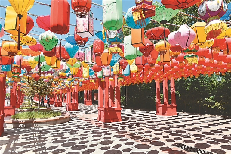 本次活動為期5天,還設(shè)有眾多特色主題展示:上千把倒懸油紙傘、1800盞紅燈籠、700余個彩燈、12盞宮燈、7座仿古涼亭……為大家?guī)硪粓鲆曈X盛宴。