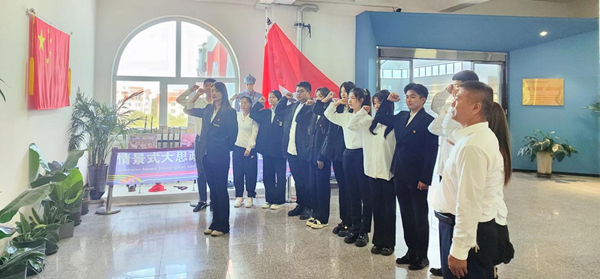 在課程結(jié)束之際,少先隊員發(fā)出了“勿忘國恥 吾輩自強”的錚錚誓言;黑龍江外國語學院藝術(shù)系輔導員張博雅帶領(lǐng)在場全體黨員重溫了入黨誓詞。短短的十二句話,道出了中國共產(chǎn)黨的百年奮斗歷程,凝聚著每一名黨員不忘初心、堅守理想的信念與力量。面對黨旗,全體黨員莊嚴地舉起右拳宣誓,表達了矢志不渝跟黨走的決心和勇?lián)姑?、不負黨恩的堅定信念。