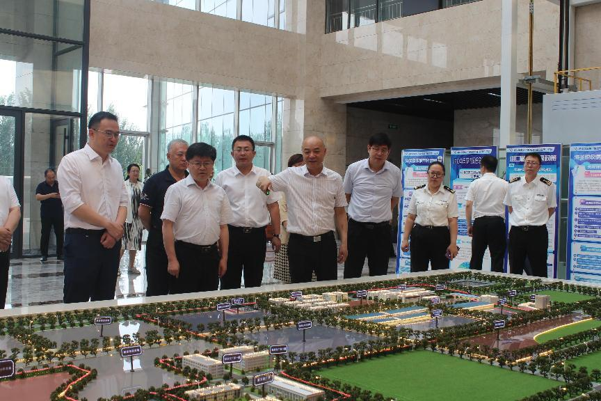 尹承云向考察組一行講解沙盤,介紹綜保區(qū)建設(shè)運營情況。