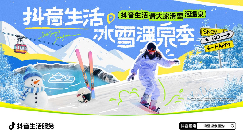 隨著全國各地降溫,“冰雪經(jīng)濟(jì)”逐漸升溫。10月22日至12月22日,抖音生活服務(wù)發(fā)起“抖音生活冰雪溫泉季”活動(dòng),重點(diǎn)圍繞哈爾濱、長春、沈陽等城市,聯(lián)動(dòng)政府、明星達(dá)人、商家線上推介當(dāng)?shù)囟疚穆觅Y源,聚合物美價(jià)優(yōu)的冬季吃喝玩樂商品;線下打造雪人城市生活圈、抖音生活市集等,吸引用戶出游打卡,激發(fā)冰雪消費(fèi)熱情,助力冰雪城市出圈。
