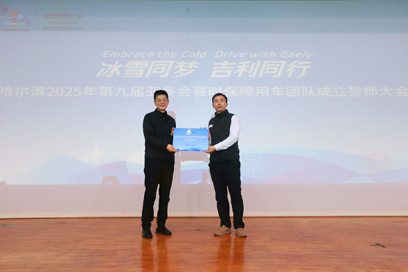在莊重而熱烈的氛圍中,現(xiàn)場隆重舉行了乘用車保障團隊授旗儀式。駕駛員們整齊列隊,許下了鄭重的承諾:“精準調(diào)度,安全駕駛,嚴格守時,真情服務(wù)。高效整備,細致維護,保障有力,穩(wěn)健運行。全力實現(xiàn):零投訴、零延誤、零事故。用真情護航,用智慧開道,冰雪同夢,吉利同行。”