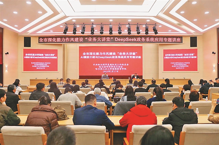 本報訊(記者 趙一諾)為加快提升機關干部數(shù)字素養(yǎng)與智能技術應用能力,助力政務工作智能化轉型升級,近日,哈爾濱市直機關工委、哈爾濱市科協(xié)、哈爾濱工業(yè)大學繼續(xù)教育學院聯(lián)合舉辦哈爾濱市深化能力作風建設“業(yè)務大講堂”——AI模型介紹與DeepSeek政務系統(tǒng)應用專題講座。哈爾濱市直機關和部分區(qū)縣共200余名機關干部參加學習。
