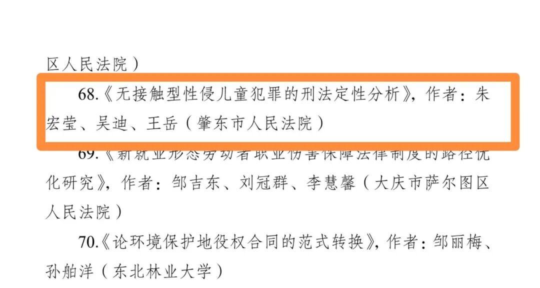 其中,督察室負(fù)責(zé)人楊紅梅、審管辦副主任朱宏瑩、審管辦副主任常亮撰寫的論文《中間人截賄行為的司法認(rèn)定研究》,榮獲三等獎(jiǎng);審管辦副主任朱宏瑩、五站人民法庭負(fù)責(zé)人吳迪、審管辦書記員王岳撰寫的論文《無(wú)接觸型性侵兒童犯罪的刑法定性分析》,榮獲優(yōu)秀獎(jiǎng);刑庭法官助理張瑩、刑庭庭長(zhǎng)王帝撰寫的論文《涉訴信訪治理機(jī)制研究》,榮獲優(yōu)秀獎(jiǎng)。