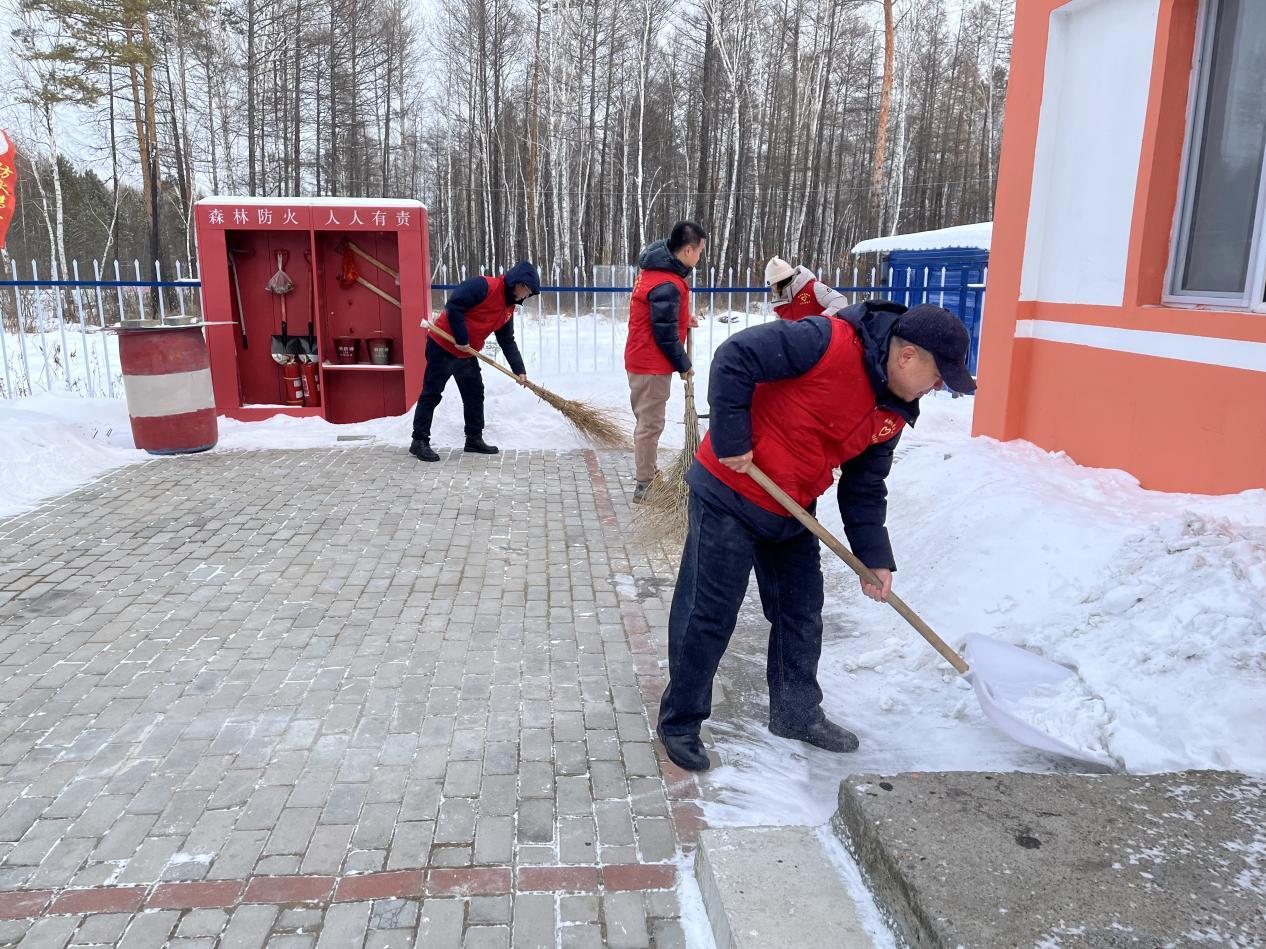 在清掃現(xiàn)場,服務隊隊長現(xiàn)場分工,志愿者們手持鐵鍬、雪推等工具,重點清理主干道與作業(yè)通道。大家配合默契,鏟雪、推雪、掃雪有序進行。盡管天氣寒冷,但志愿者們干勁十足。經(jīng)過連續(xù)奮戰(zhàn),各管護站的主要道路、院落和通道積雪被徹底清除,出行安全得到保障。