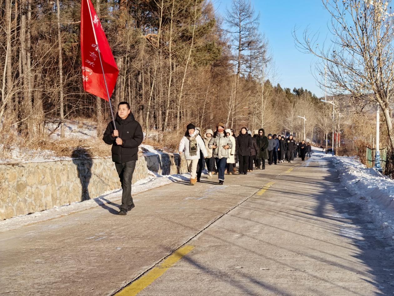 活動中,150余名林業(yè)局機關(guān)干部職工在原林園門前集結(jié)。隨著出發(fā)指令下達,徒步隊伍沿著預設(shè)路線有序前行,有經(jīng)驗豐富的職工帶頭穩(wěn)步前行,不時提醒身旁同事注意腳下安全。年輕干部們活力滿滿,時而相互鼓勁,時而駐足欣賞沿途銀裝素裹的冬日盛景,盡管天氣寒冷,但絲毫未影響大家的參與熱情。經(jīng)過兩個小時的徒步,大家攜手并進順利抵達終點。